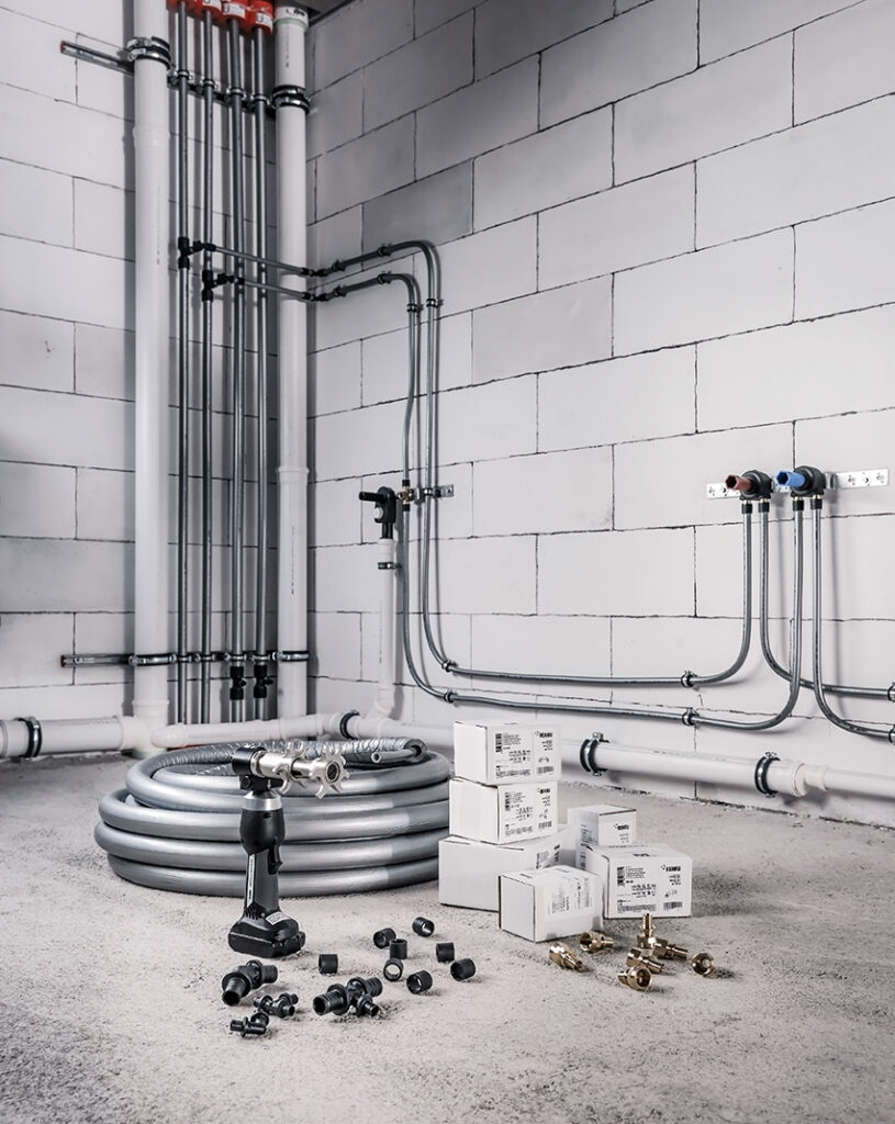 Einmal eingebaut, verschwinden die Rohrleitungen in Wand und Boden. Umso wichtiger ist es, bei der Wahl des Rohrsystems die Zukunft im Blick zu haben. Die Rohre bestehen aus dem hochdruckvernetzten Hightech-Werkstoff PE-Xa und sind die Basis für einen sicheren Einsatz über Jahrzehnte. Bei der absolut dichten Verbindungstechnik setzt REHAU auf äußerst robuste Materialien, die auch in der Raumfahrt zum Einsatz kommen. Diese sind besonders widerstandsfähig gegen Korrosion, selbst bei problematischen Trinkwasserqualitäten.